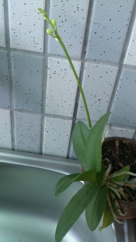 養了五六年的蘭花,沒好好照顧過她,所以從沒想過她會活著,更沒想過她會開花,但,有一天發現被我放在陽台水槽邊的她,竟然抽出一根花苞芽,她竟然在今年的盛夏開了!!